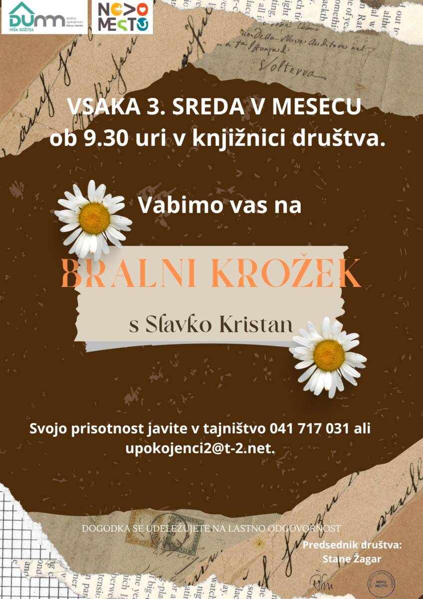 VABILO: Bralni krožek – Sreda, 15. 4. 2026 Društvo upokojencev2026-04-10T13:16:24+02:0010.04.2026|Novice| Delite na socialnih omrežjih. FacebookXRedditLinkedInTumblrPinterestVkEmail